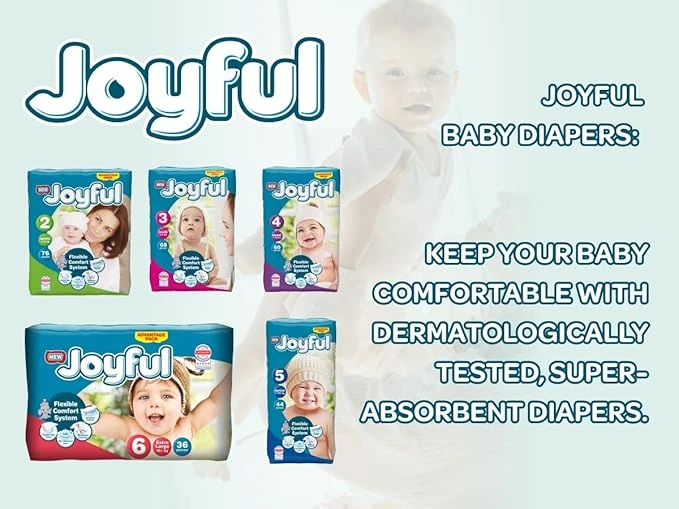 حفاظات جويفل - العبوة الاقتصادية مقاس 4Joyful Baby Diapers - Eco Packالمقاسات المتوفرة: