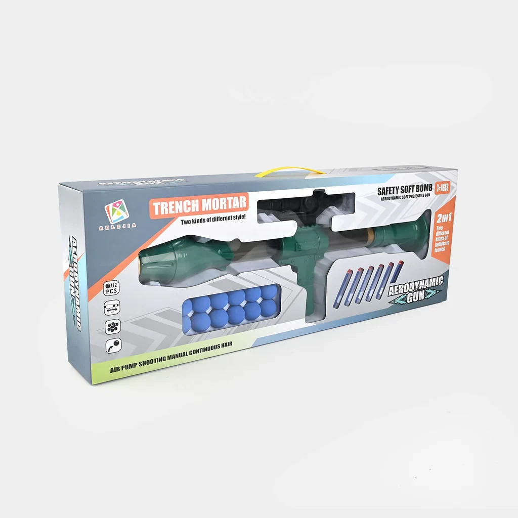 لعبة مدفع بازوكا الهوائي المزدوج Trench Mortar Aerodynamic Gun - 2in1 Safety Soft Bomb