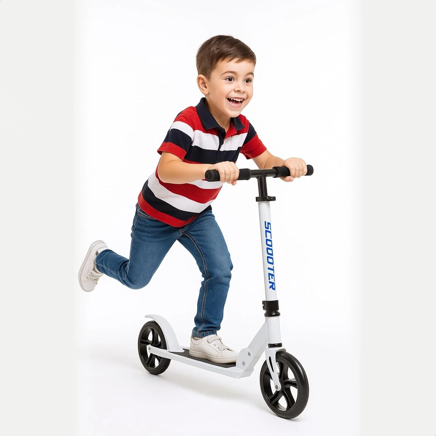 سكوتر حديد أبيض قابل للطي بعجلتين White Foldable Kick Scooter - Large Wheels