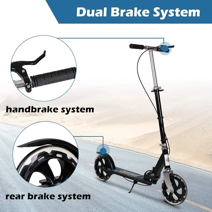 سكوتر حديد أبيض قابل للطي بعجلتين BLACK Foldable Kick Scooter - Large Wheels